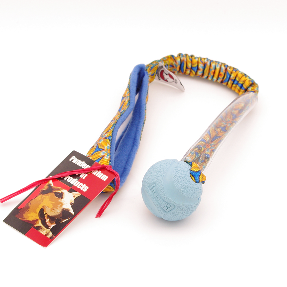For smaller dogs with strong bites we present our PVC hose line of toys - the most durable cuff we have that is still safe for biting. This tug consists of a small chuck it ball, a 6 inch pvc hose cuff, 4 inches of bungee and a fleece lined handle.