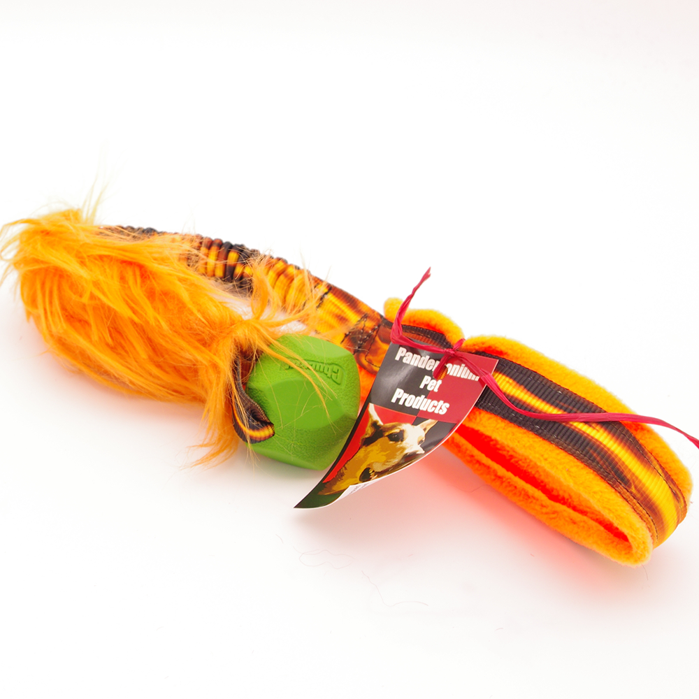 A great little toy for small dogs; folds away easily, but also has fun, bright faux fur to entice the reluctant tugger!
